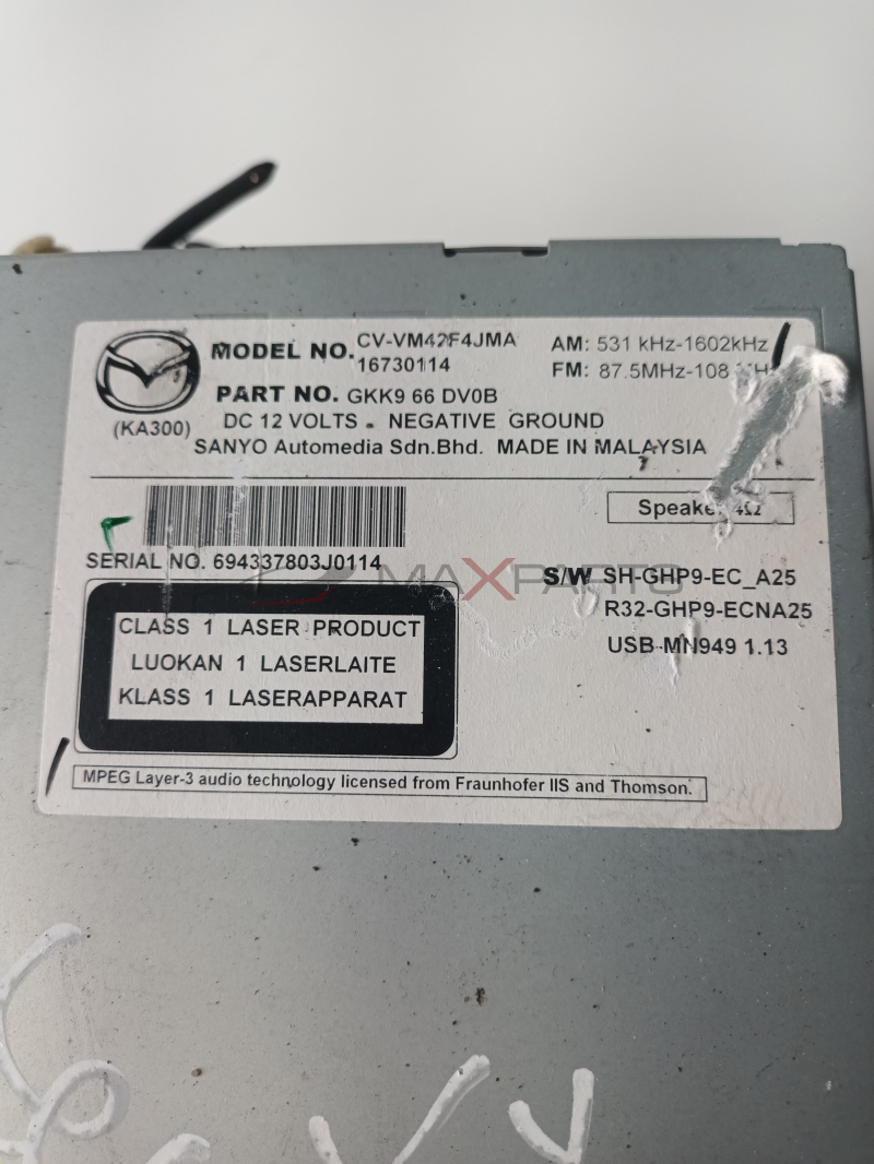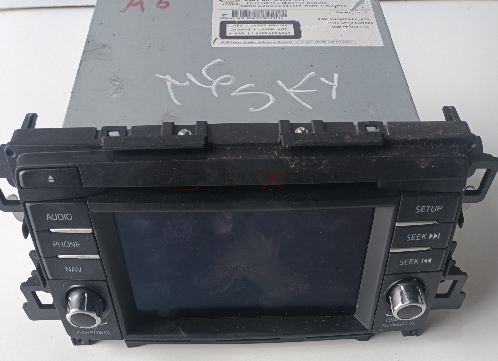 NAVI MAZDA 6 2.2 SKYACTIVE GKK 66 DV6 DC 12 VOLTS . NEGATIVE GROUND SANYO Automedia Sdn.Bhd . MADE IN MALAYSIA SERIAL NO . 694337803J0114